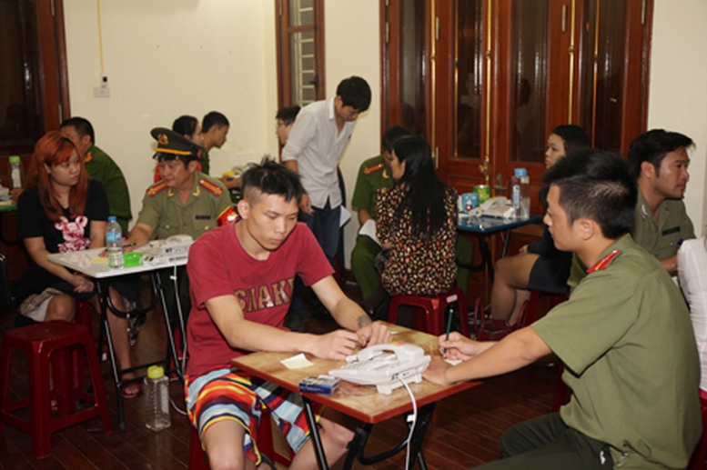 | Lực lượng Công an lấy lời khai ban đầu từ các đối tượng bị bắt giữ. Ảnh: CAND |