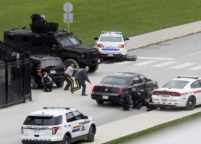Cùng ngày, phát biểu trên truyền hình, Thủ tướng Canada Stephen Harper tuyên bố vụ nổ súng giết hại một binh sĩ nước này tại thủ đô Ottawa trước đó cùng ngày và vụ một phần tử cải sang đạo Hồi đụng độ với 2 binh sĩ Canada gần Montreal, khiến một người thiệt mạng hai ngày trước đó đã nhắc nhở rằng Canada không "miễn dịch" với chủ nghĩa khủng bố.