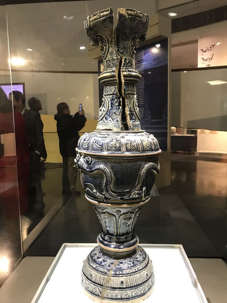 | Đèn gốm men lam xám thế kỷ XVI của nghệ nhân Đặng Huyền Thông, một nghệ nhân tượng gốm tài hoa tiêu biểu ở thời Mạc. Ảnh: Báo Thể thao văn hóa |