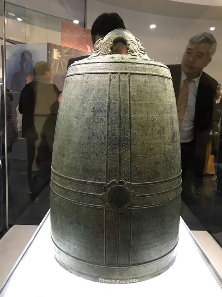 | Chuông Thanh Mai có niên đại năm 798, phát hiện tại Bãi Rồng, xã Thanh Mai, huyện Thanh Oai, là 1 trong 10 kỷ lục văn hóa Phật giáo Việt Nam năm 2006. Ảnh: Báo Thể thao văn hóa |