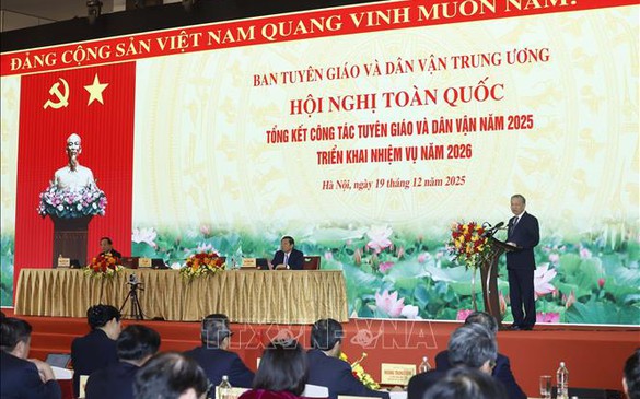 (Chinhphu.vn) - Sáng 19/12, Tổng Bí thư Tô Lâm dự và phát biểu chỉ đạo tại Hội nghị toàn quốc tổng kết công tác Tuyên giáo và Dân vận của Đảng năm 2025, triển khai nhiệm vụ năm 2026. Cổng Thông tin điện tử Chính phủ trân trọng giới thiệu toàn văn bài phát biểu của đồng chí Tổng Bí thư.