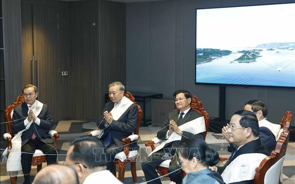 (Chinhphu.vn) - chiều 6/2, tại trụ sở Đảng Nhân dân Campuchia (CPP), Tổng Bí thư Tô Lâm cùng Chủ tịch CPP Hun Sen và Tổng Bí thư Đảng Nhân dân Cách mạng Lào Thongloun Sisoulith đã đồng chủ trì Cuộc gặp giữa Người đứng đầu ba Đảng Việt Nam - Campuchia - Lào. Cùng dự cuộc gặp có Thủ tướng ba nước, Chủ tịch Quốc hội Việt Nam và Chủ tịch Quốc hội Campuchia.