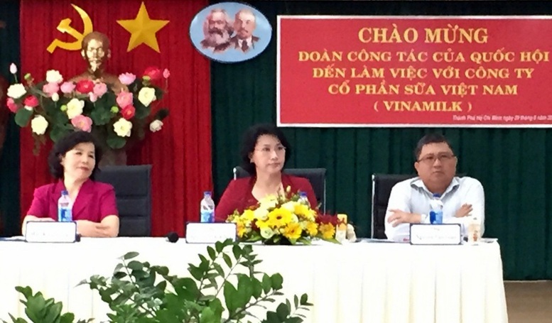 Để ghi nhận những ý kiến thực tiễn từ các doanh nghiệp (DN) Nhà nước đã và đang thực hiện cổ phần hoá, từ đó hoàn thiện hơn nữa luật, chính sách, tạo điều kiện cho các DN phát triển, ngày 29/6, đoàn công tác do Ủy viên Bộ Chính trị, Phó Chủ tịch Quốc hội Nguyễn Thị Kim Ngân đã có buổi làm việc với Vinamilk.