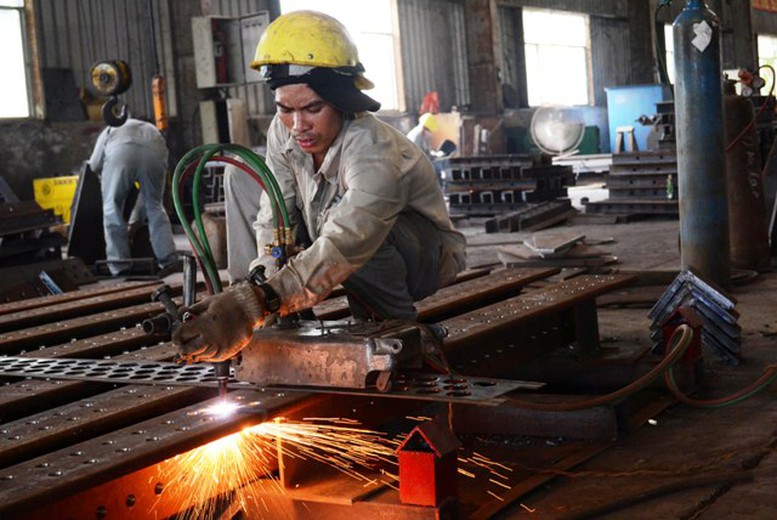 Công nhân Công ty cổ phần Thành Long thi công kết cấu tại nhà máy tại TPHCM. Ảnh: VGP/Mạnh Hùng |