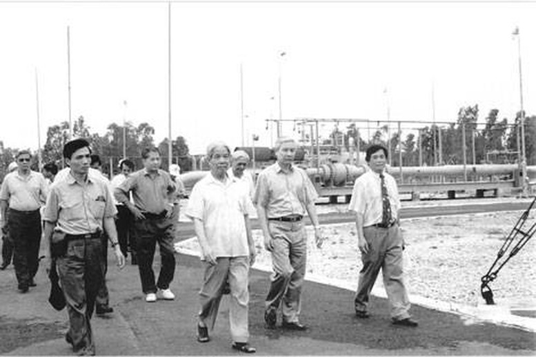 Nguyên Tổng Bí thư Đỗ Mười thăm một công trình của ngành Dầu khí. - Ảnh tư liệu |