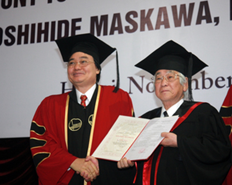 Bằng Tiến sỹ Danh dự của ĐHQGHN còn nhằm ghi nhận những đóng góp quý báu của GS Maskawa trong việc phát triển quan hệ hợp tác hữu nghị giữa hai nước Việt Nam-Nhật Bản nói chung và giữa ĐHQGHN với các đối tác Nhật Bản nói riêng.