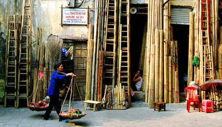 D?c m?t con du?ng, ta th?y có Hàng Ðào (t?ng làm ngh? nhu?m d?), Hàng Ngang (ph? ngu?i Trung Hoa, nhà Ðu?ng, là Ðu?ng Nhân, ngu?i Pháp d?ch là Cantonnais) ch? làm gì có món nào là Ngang mà buôn bán, ti?p d?n Hàng Ðu?ng, Hàng G?o, th?ng lên Hàng Gi?y, qu?t sang hai bên là Hàng B?c, Hàng B? (có m?t do?n là Hàng Dép), Hàng Bu?m, Hàng Cá, Hàng Mã, Hàng Chi?u, Hàng Khoai, Hàng Ð?u, Hàng Than… (Hàng Than là Ðông B? Ð?u th?i nhà Tr?n, còn g?i là B?n Ðá - Phu?ng Th?ch Kh?i, Th?ch Tân).