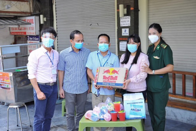 | Chị Phương Thị Lệ Hạnh (áo hồng)-Quản lý Kinh doanh tại Công ty TNHH Giày Thái Dương - Trưởng nhóm thiện nguyện “Biên cương trong tôi” cùng bạn bè trao lương thực, vật phẩm thiết yếu hỗ trợ nhân dân hai phường Chương Dương và Phúc Tân, quận Hoàn Kiếm. Ảnh: VGP/Lan Anh |