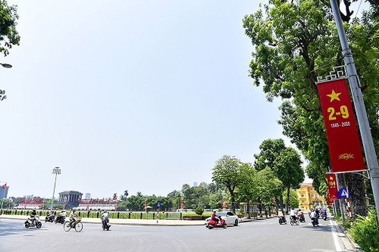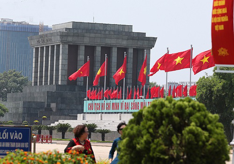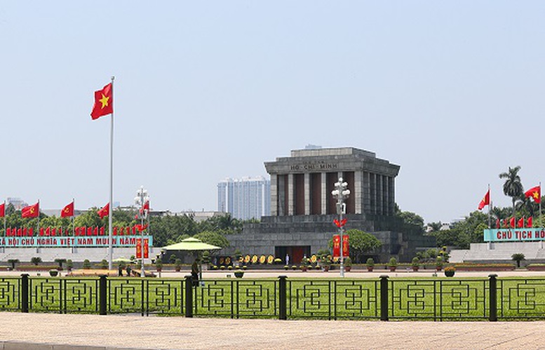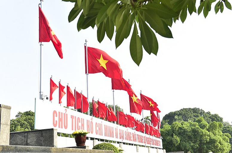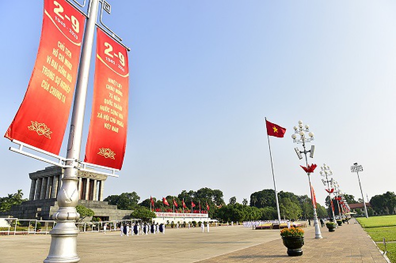 Khu vực Lăng Bác, cờ hoa được treo xung quanh tạo không khí hứng khởi chào mừng ngày lễ lớn của dân tộc - Ảnh: VGP/Đoàn Bắc