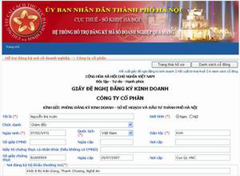 Với việc tự in ra các văn bản đúng mẫu quy định với đầy đủ thông tin, DN có thể nhanh chóng hoàn chỉnh hồ sơ, nộp tại Bộ phận 1 cửa liên thông và nhận được Giấy chứng nhận đăng ký kinh doanh-đăng ký thuế (với mã số DN chính là mã số đăng ký kinh doanh đồng thời là mã số thuế) trong thời gian rút ngắn từ 1-2 ngày so với quy định, giảm số lần đi lại từ 1-2 lần.