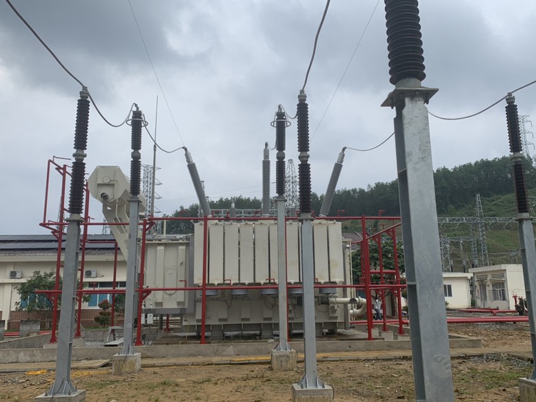 | Máy biến áp thứ 2, TBa 220kV sông Tranh 2 mới được đóng điện thành công. Ảnh: CPMB |