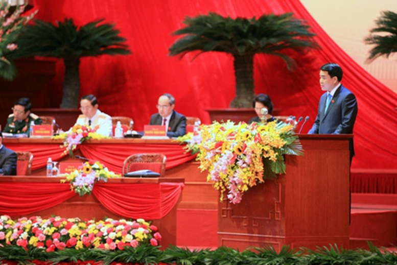 | Phó Bí thư Thành ủy, Chủ tịch UBND TP. Hà Nội Nguyễn Đức Chung đọc tham luận tại Đại hội. Ảnh: VGP/Xuân Tuyến |