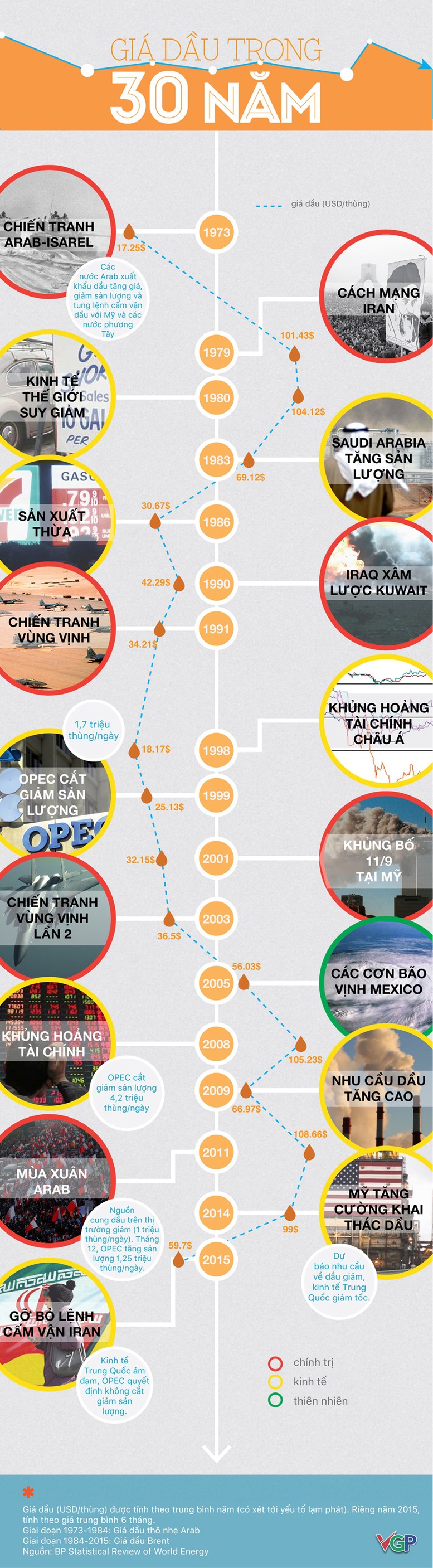 [Infographic] Giá dầu thay đổi thế nào trong 30 năm qua