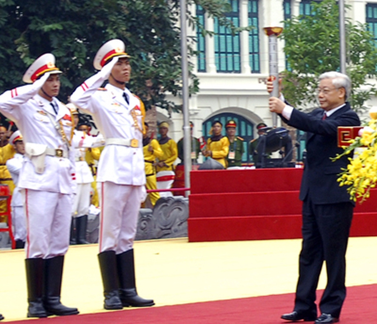 Chủ tịch Quốc hội Nguyễn Phú Trọng thắp Đài lửa - Ảnh Chinhphu.vn |
