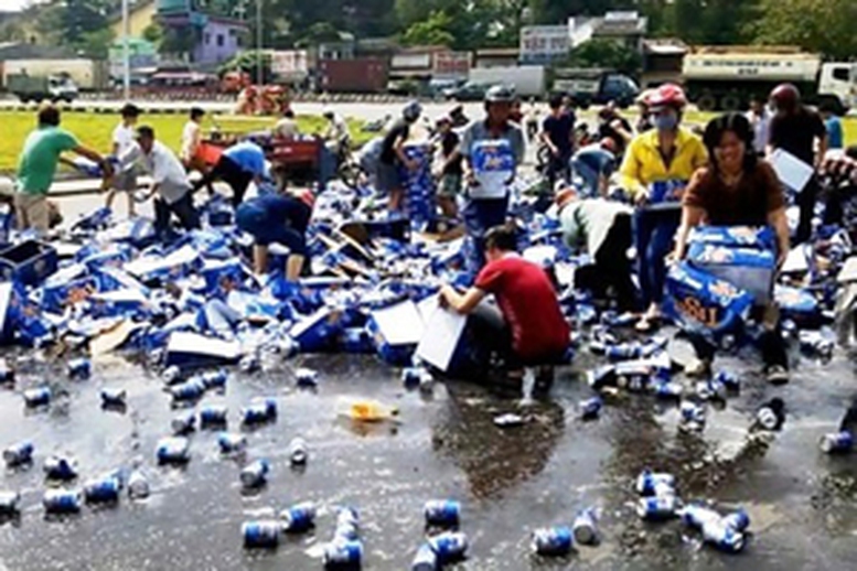 Lúc này hàng chục người dân địa phương và những người đi ngang qua đã vào cướp bia và lấy đi hơn 1.000 thùng bia, trị giá 310 triệu đồng.