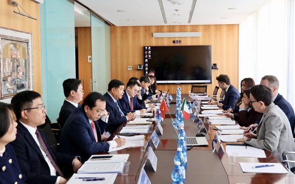 (Chinhphu.vn) - Làm việc với Ngân hàng Intesa SanPaolo vào chiều 20/3 (theo giờ địa phương) tại Milan, Italy, Phó Thủ tướng Nguyễn Chí Dũng cho biết Việt Nam sẵn sàng tạo điều kiện thuận lợi để các tổ chức tài chính quốc tế, trong đó có Intesa Sanpaolo, mở rộng hợp tác và tham gia sâu hơn vào quá trình phát triển kinh tế của Việt Nam.