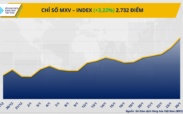(Chinhphu.vn) - Theo Sở Giao dịch hàng hóa Việt Nam (MXV), thị trường hàng hóa thế giới giao dịch trầm lắng trong ngày Mỹ nghỉ lễ Martin Luther King, khiến thanh khoản suy giảm. Dù vậy, đóng cửa, chỉ số MXV-Index vẫn nhích thêm 0,2%, lên 2.520 điểm.