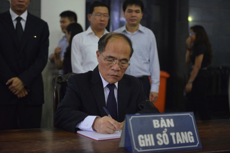 | Chủ tịch Quốc hội Nguyễn Sinh Hùng ghi sổ tang.