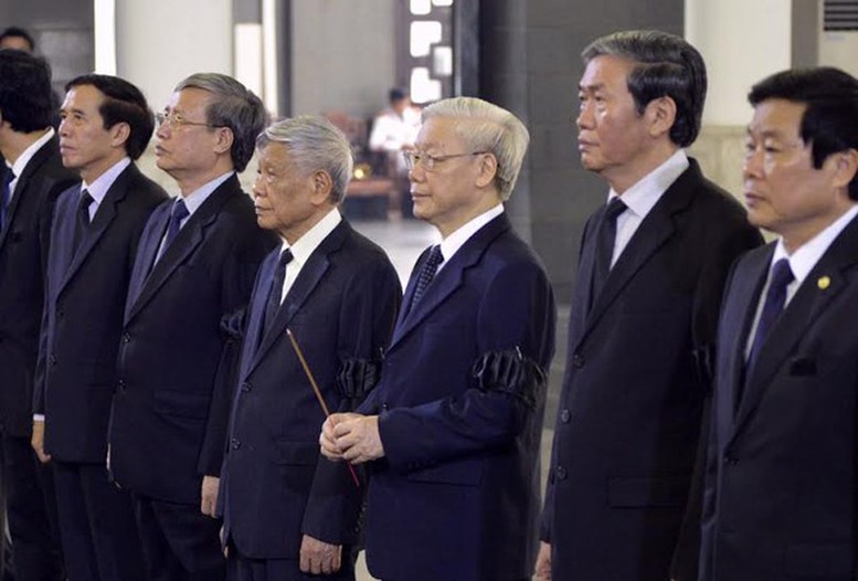 Tổng Bí thư Nguyễn Phú Trọng, nguyên Tổng Bí thư Lê Khả Phiêu viếng nhà báo Hữu Thọ.