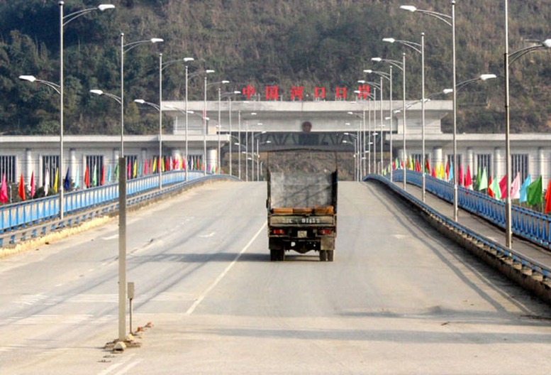 | Hai tấn tôm hùm trị giá hơn 700 triệu đồng của Công ty Việt Tú được vận chuyển qua cầu Kim Thành để sang Trung Quốc. Ảnh: Báo Lào Cai |