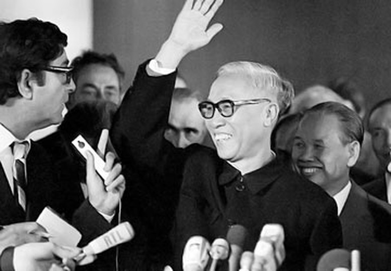 Cố vấn đặc biệt Lê Đức Thọ với nụ cười thắng lợi tại Hội nghị Paris. Ảnh tư liệu |