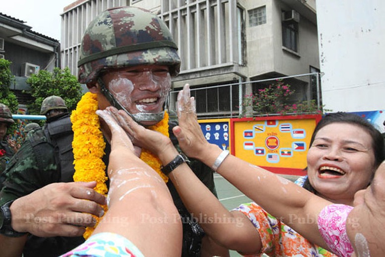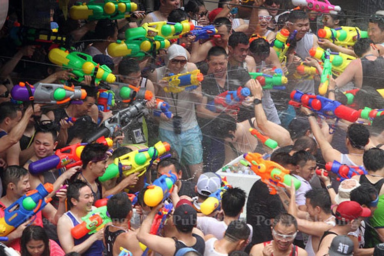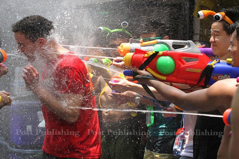 | Theo tục lệ ở Thái Lan, ai được té nước nhiều vào ngày lễ này sẽ gặp được nhiều may mắn. Ảnh: bangkok post |
