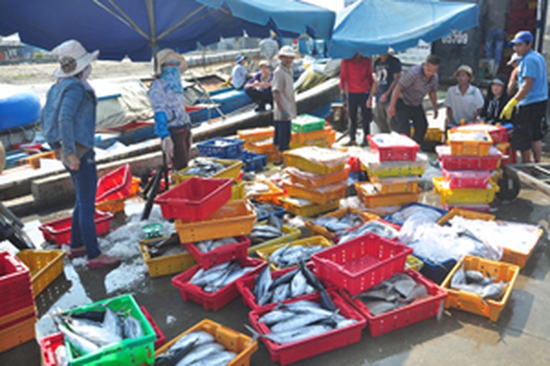 | Ngư dân phấn khởi bán cá ngừ. Ảnh: VGP/Lưu Hương |