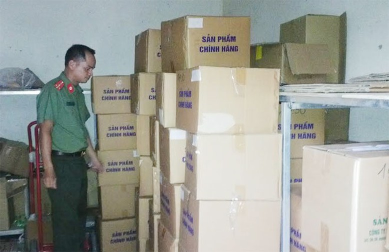 Khám kho hàng hóa tại khu đô thị Văn Phú, lực lượng chức năng tạm giữ hơn 2.830 hộp TPCN; 3.986 lọ thực phẩm bảo vệ sức khỏe do nhiều công ty tại Việt Nam sản xuất; 1.550 lọ đựng viên nang sản xuất từ nhiều nước như Australia, Nhật Bản, Đức; 2.860 chai siro cùng nhiều bao bì, 104 kg nhãn mác các loại, máy ép màng, máy sấy nhiệt các loại...