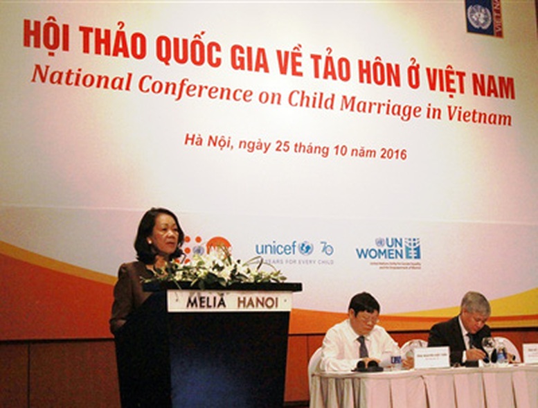 Phát biểu tại hội thảo, Ủy viên Bộ Chính trị, Trưởng ban Dân vận Trung ương Trương Thị Mai nhấn mạnh, giảm thiểu, tiến tới xóa bỏ nạn tảo hôn là việc làm cấp thiết. Đồng thời, cần phải tiếp tục tăng cường đầu tư cơ sở hạ tầng thiết yếu, hỗ trợ sinh kế cho các gia đình nhằm phát triển kinh tế-xã hội, trong đó dành ưu tiên cho các địa bàn trọng điểm và một số dân tộc thiểu số có tỉ lệ tảo hôn cao.