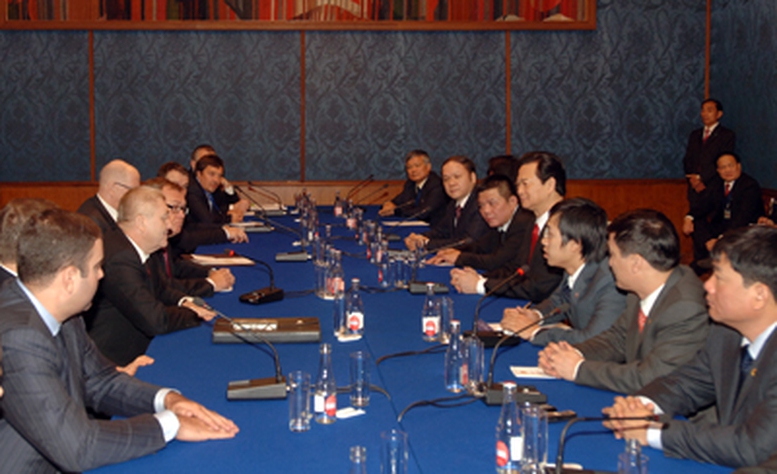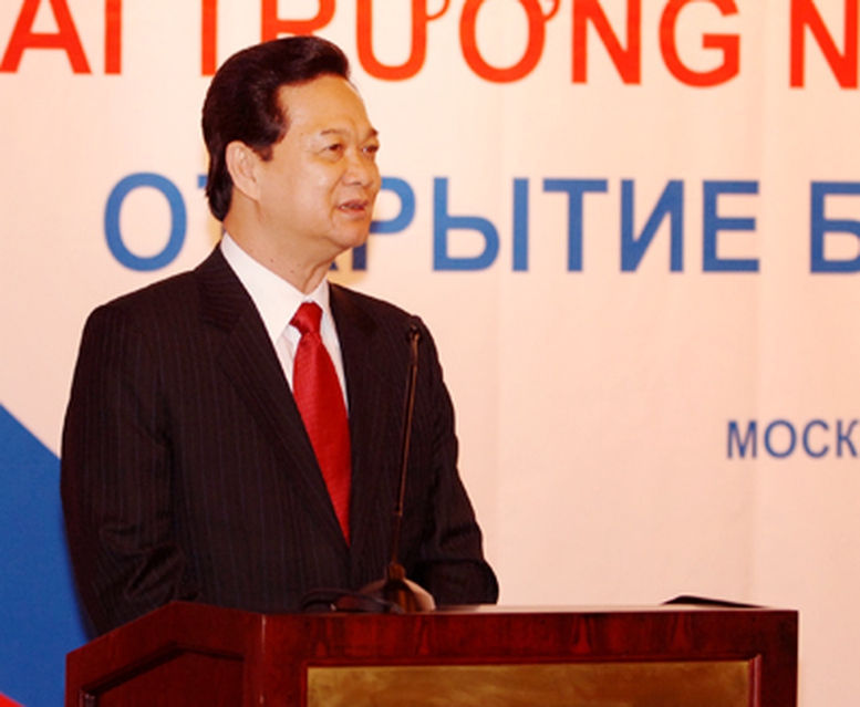 Trước đại diện các tập đoàn, doanh nghiệp (DN) lớn của Việt Nam và LB Nga, Thủ tướng Nguyễn Tấn Dũng mong muốn các DN hai bên tăng cường hợp tác đầu tư tương xứng với quan hệ đối tác chiến lược và hợp tác toàn diện của hai nước. Thủ tướng cho biết, trong chuyến thăm LB Nga lần này, Đoàn đại biểu Chính phủ Việt Nam mong muốn cùng với LB Nga đưa quan hệ đối tác chiến lược và hợp tác toàn diện giữa hai nước trên tất cả các lĩnh vực lên một tầm cao mới, đem lại lợi ích thiết thực cho cả hai bên, tương xứng với tiềm năng sẵn có.