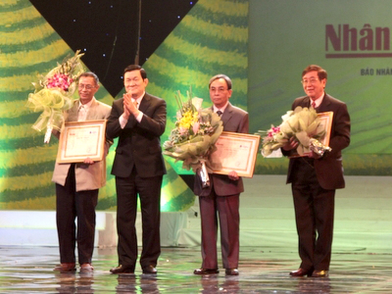 Chủ tịch nước Trương Tấn Sang trao giải A và giải B cho các tác giả. Ảnh: Chinhphu.vn |