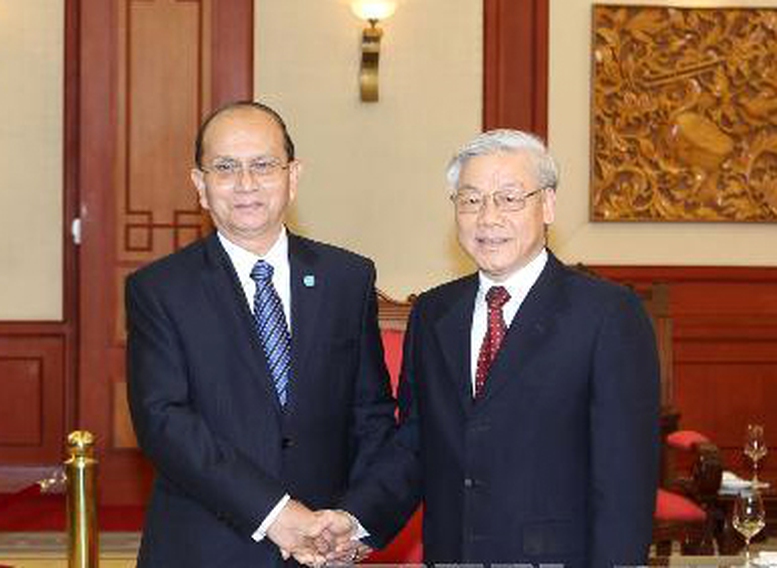 Tổng Bí thư Nguyễn Phú Trọng và Tổng thống Myanmar Thein Sein. - Ảnh: VNA |