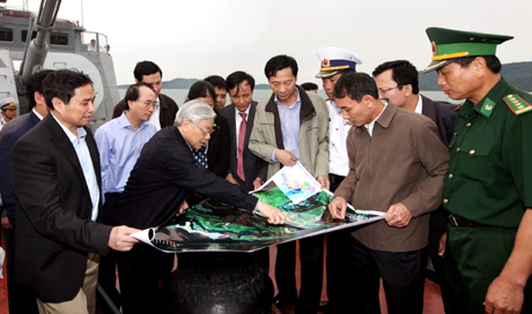 Trước đó, chiều 6/4, Tổng Bí thư Nguyễn Phú Trọng đã đến thăm huyện đảo Vân Đồn. Đây là nơi có Khu kinh tế Vân Đồn,1 trong số 14 khu kinh tế ven biển của cả nước.