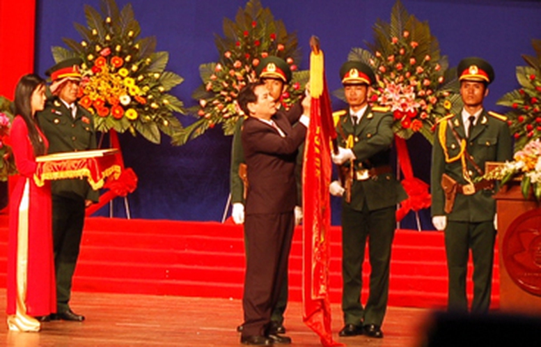Chủ tịch nước Nguyễn Minh Triết trao Danh hiệu Anh hùng Lực lượng vũ trang nhân dân lần thứ hai tặng lực lượng vũ trang thành phố - Ảnh: SGTT |