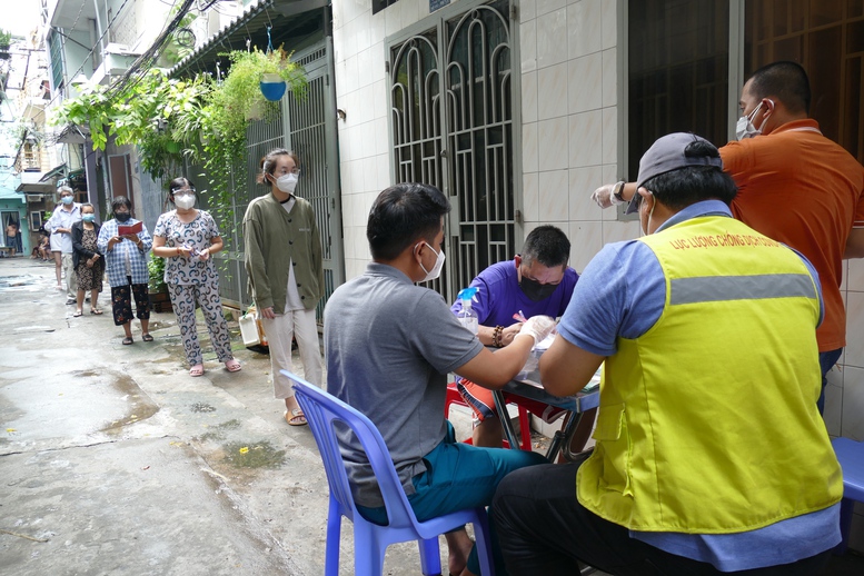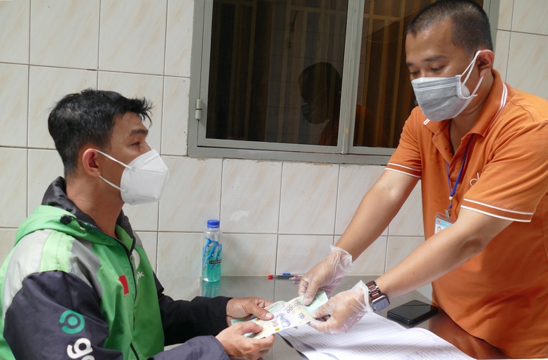 Tại phường Võ Thị Sáu, Quận 3, các tổ công tác của phường chia nhau “đi từng ngõ, gõ từng nhà” phát tiền hỗ trợ cho người dân.