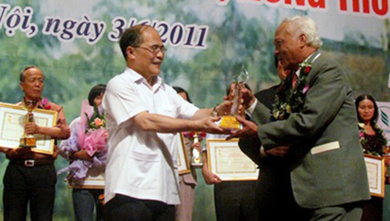 Phó Thủ tướng Nguyễn Sinh Hùng trao kỷ niệm chương cho tác giả đoạt giải - Ảnh Chinhphu.vn |