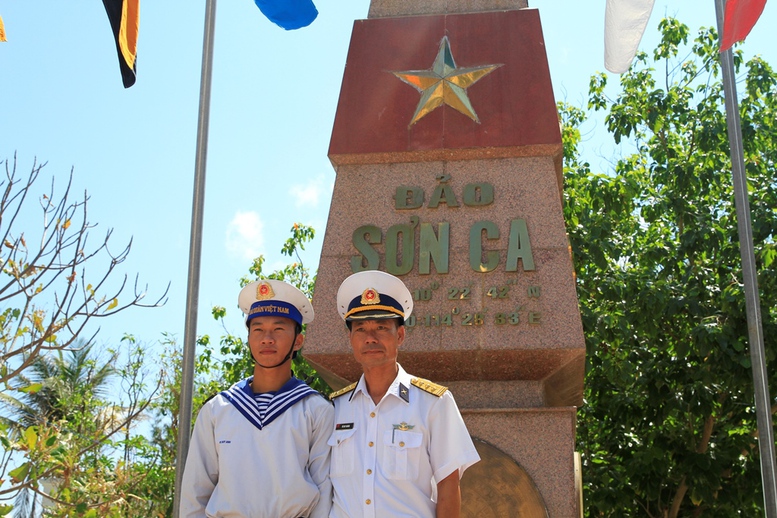 "Nhìn cháu mới ngày nào còn cắp sách đến trường, nay bước chân lên cầu cảng đảo Sơn Ca với dáng dấp chững chạc, rắn rõi, tôi rất mừng. Ở đây chúng tôi không chỉ là bố con mà còn là đồng chí, đồng đội thân thiết. Dù ở đảo xa nhưng bố con được bên nhau tôi cảm thấy rất ấm lòng”, anh Khánh chia sẻ giây phúc hạnh phúc khi đón con ra làm nhiệm vụ ở đảo.