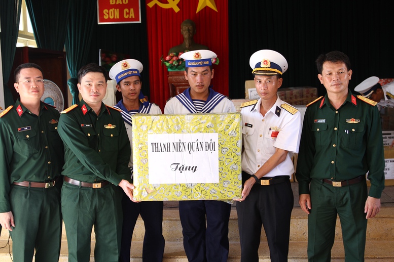 | Đoàn công tác tặng quà cán bộ, chiến sĩ đảo Sơn Ca. Ảnh: VGP/Thế Phong |