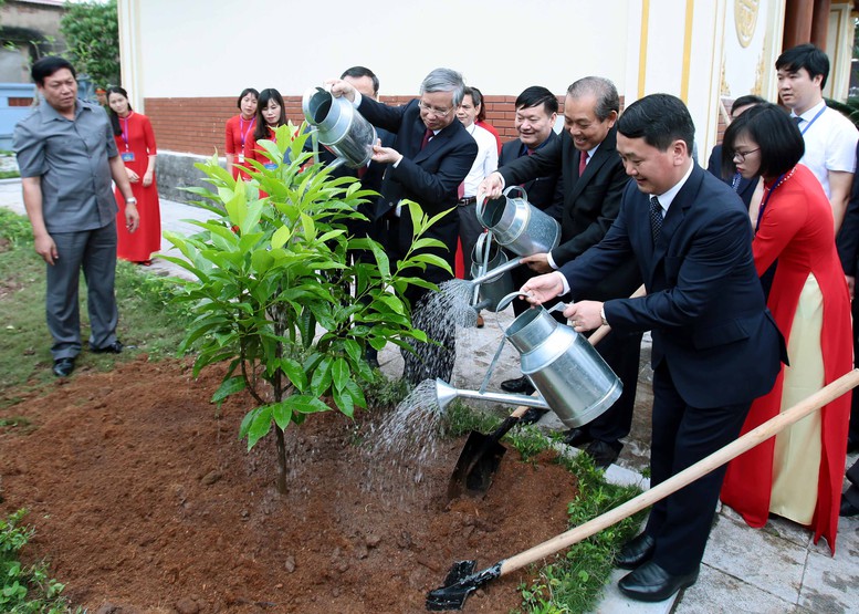 | Các đại biểu trồng cây lưu niệm tại khu di tích. - Ảnh: VGP/Lê Sơn |