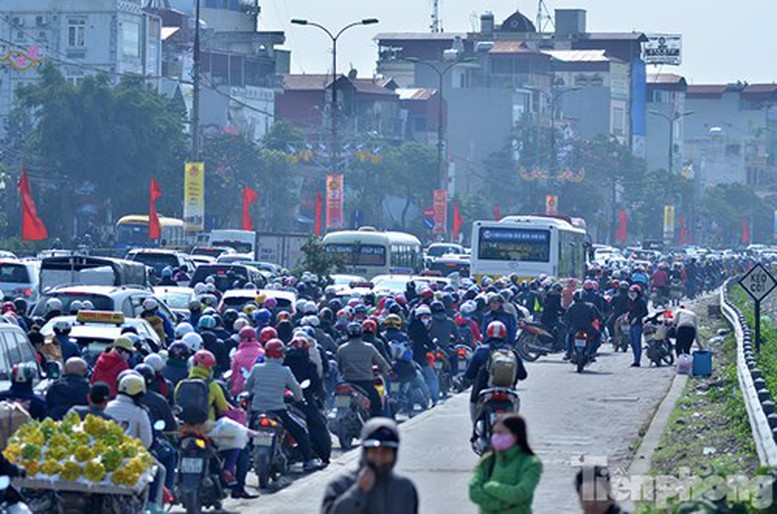 Sáng ngày 6/2, do lượng người đổ về quê ăn Tết tiếp tục tăng nên các tuyến đường trục chính ra vào Thành phố như các tuyến đường vành đai 3, đường ra Pháp Vân-Cầu Giẽ, ra Quốc lộ 5… bị ùn tắc nghiêm trọng.