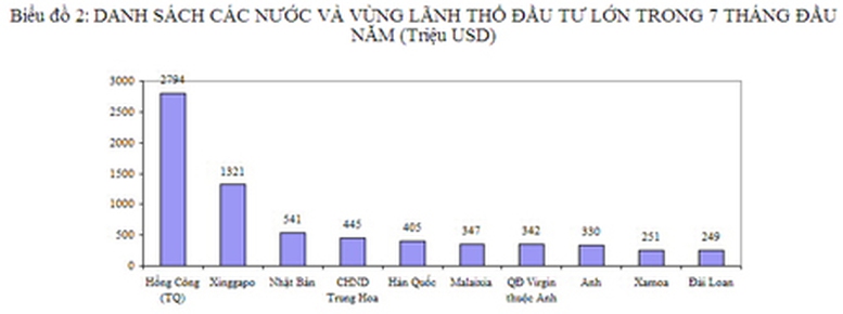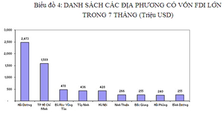 Trong 7 tháng đầu năm có 10 địa phương có số vốn đăng ký lớn như sau: