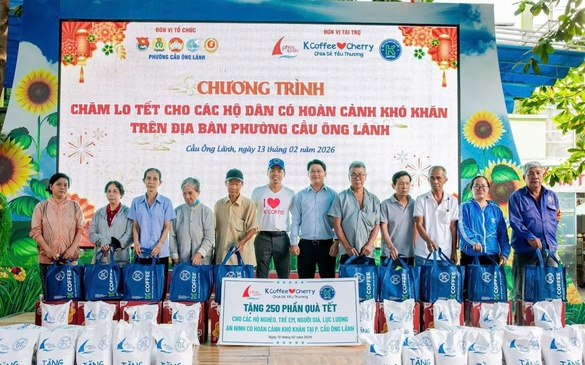 (Chinhphu.vn) - Trước thềm Tết Nguyên đán 2026, Phúc Sinh Group và K Coffee thông qua Quỹ “K Coffee & Cherry Chia Sẻ Yêu Thương” đã triển khai chuỗi hoạt động cộng đồng tại TPHCM, Lâm Đồng và Đắk Lắk, trao tặng 750 phần quà cùng 130 triệu đồng tiền mặt nhằm hỗ trợ các gia đình có hoàn cảnh khó khăn đón Tết ấm áp hơn.