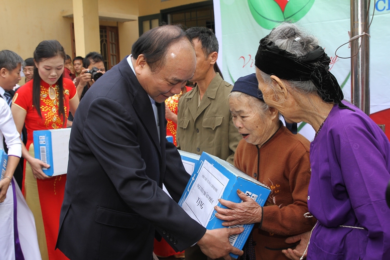 | Phó Thủ tướng Nguyễn Xuân Phúc tặng quà các gia đình khó khăn xã Cao Kỳ. Ảnh: VGP/Lê Sơn |